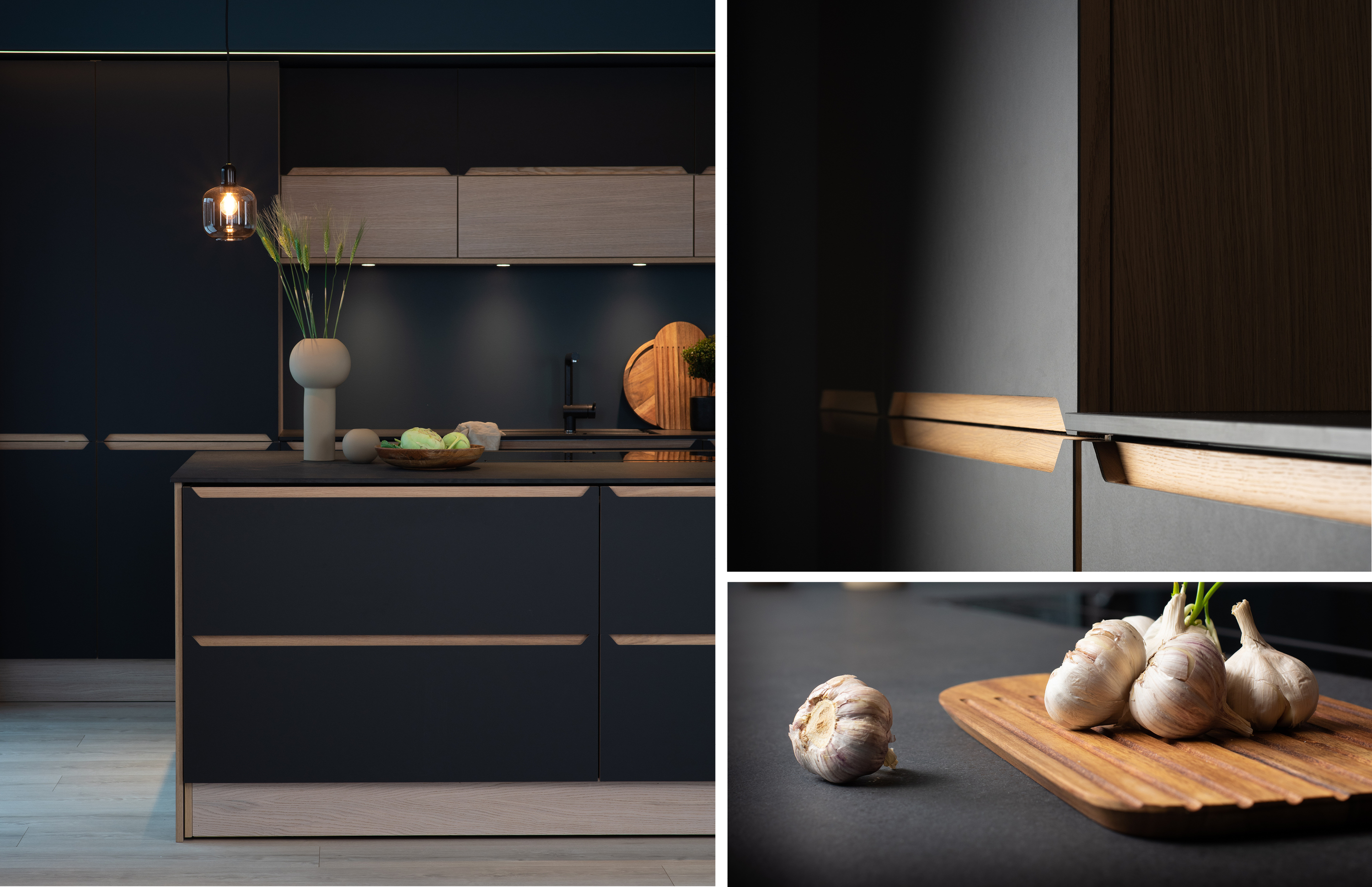 Et rent og varmt kjøkken i miljøvennlige materialer. Med fronter av naturproduktet linoleum, og lister i tre er Falketind en sofistikert og påkostet modell. Prikken over i’en er det lekre, integrerte grepet i massiv eik. Falketind er tilgjengelig i fire ulike farger, og detaljene i eik kan fås i natur og i hvit.
