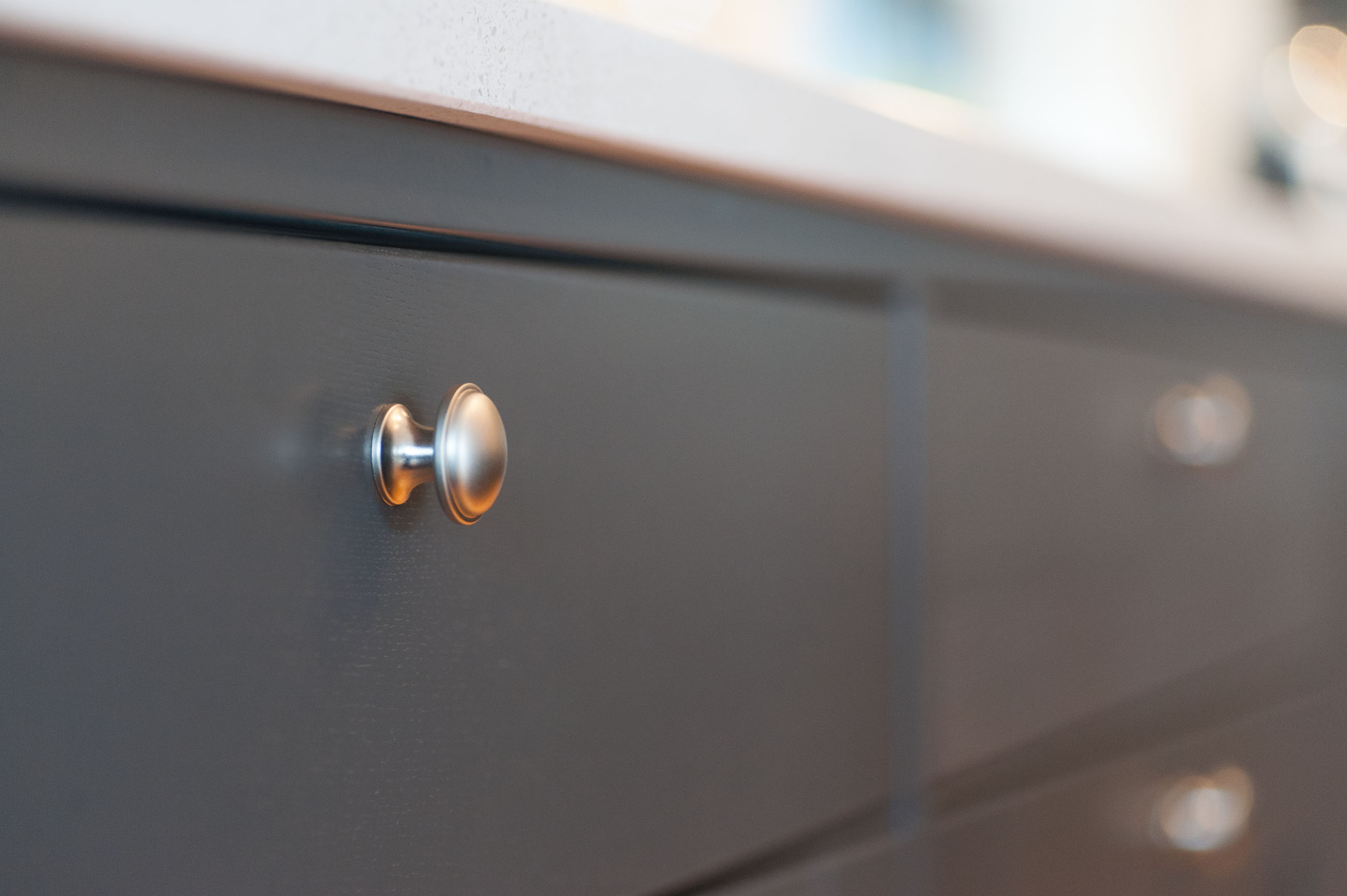 Resultatet ble et Premium-kjøkken med elegante linjer og et luftig, klassisk uttrykk. Fargekombinasjonen av grå, heltre eik og Silestone benkeplate i fargen Maple er paret glad de valgte. Over kjøkkenøya ligger ventilatoren godt skjult i taket. Vi savner ikke overskap, hvite- varene, høyskap og benkeskap dekker oppbevaringsbehovene.