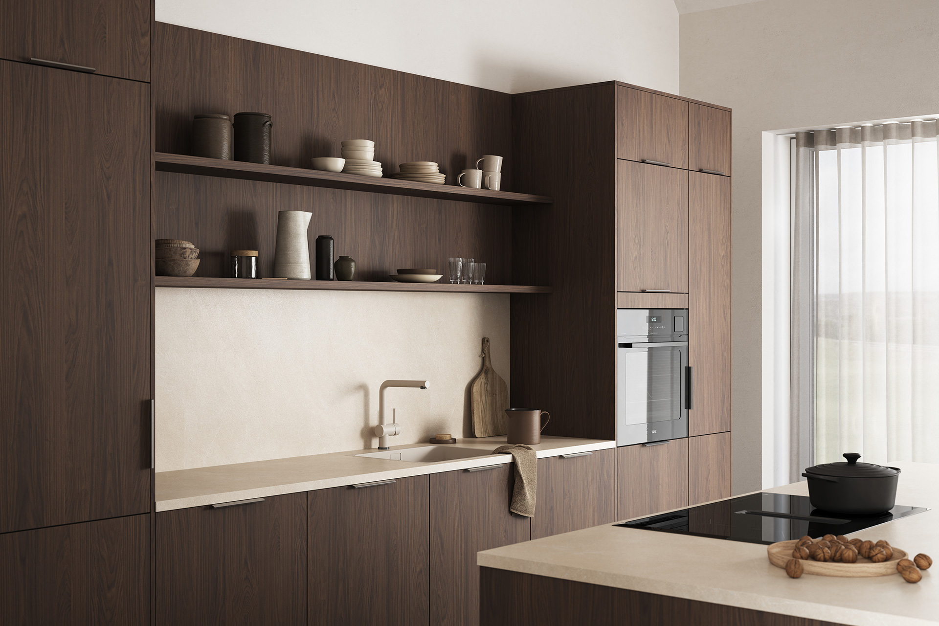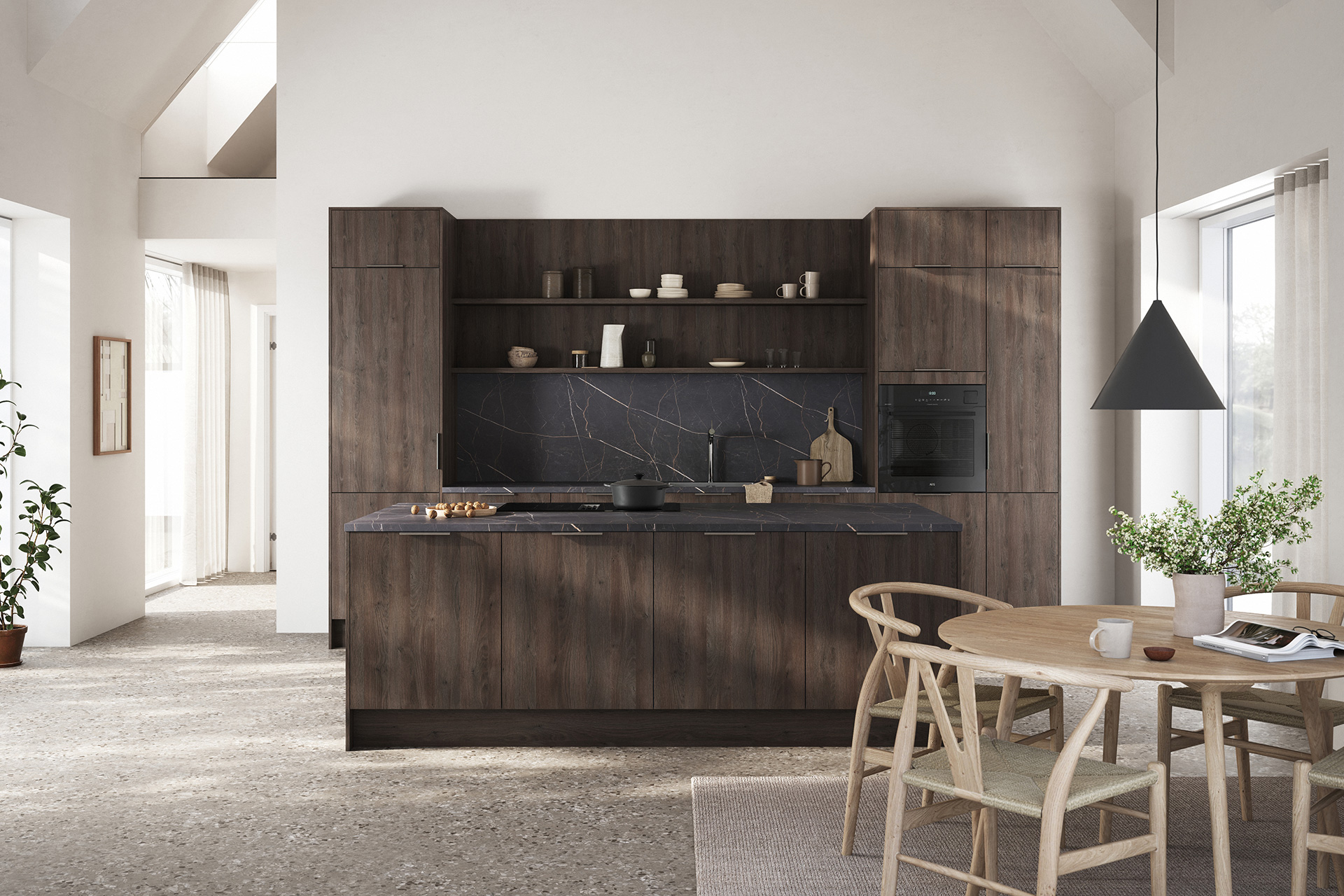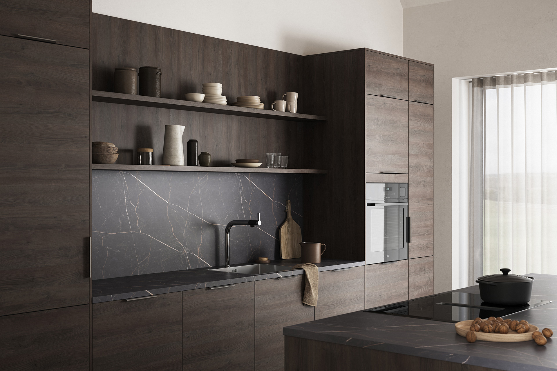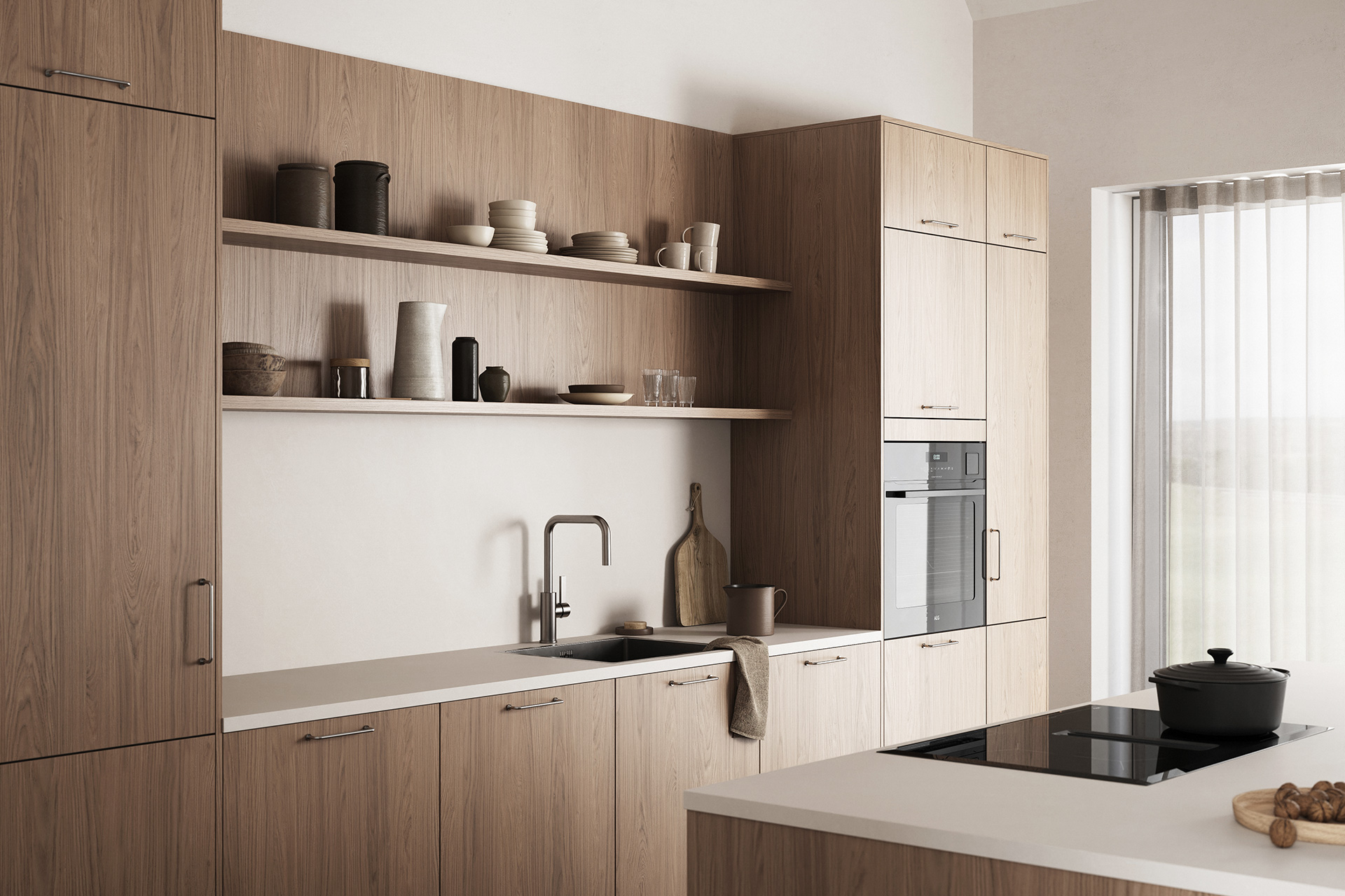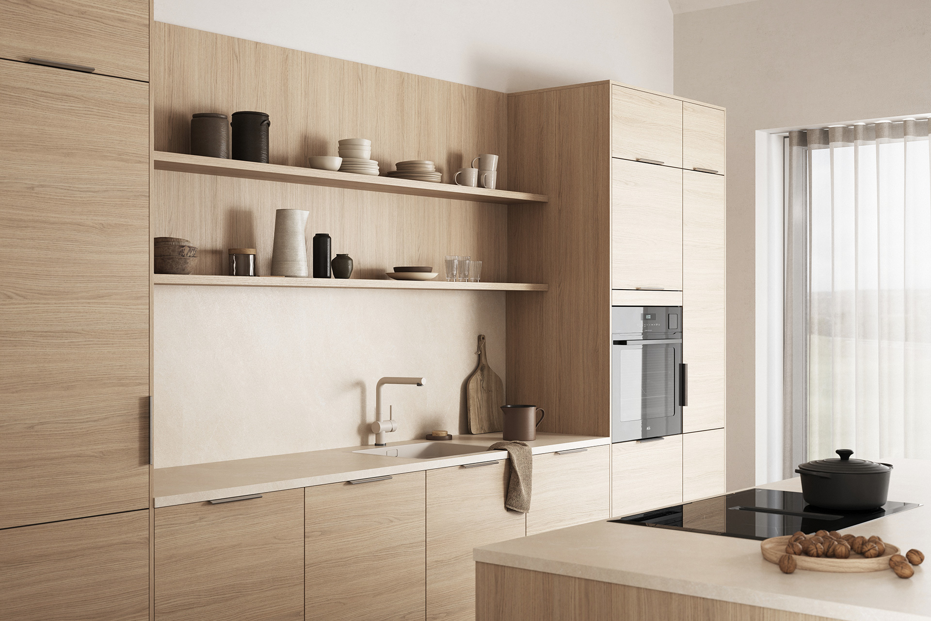 Femunden har en overflate som gjengir trestruktur og -mønster på en naturtro måte. Her får du det beste fra to verdner: holdbarhet og stabilitet fra slitesterk melamin i kombinasjon med struktur og fargespill vi kjenner fra ekte tre.