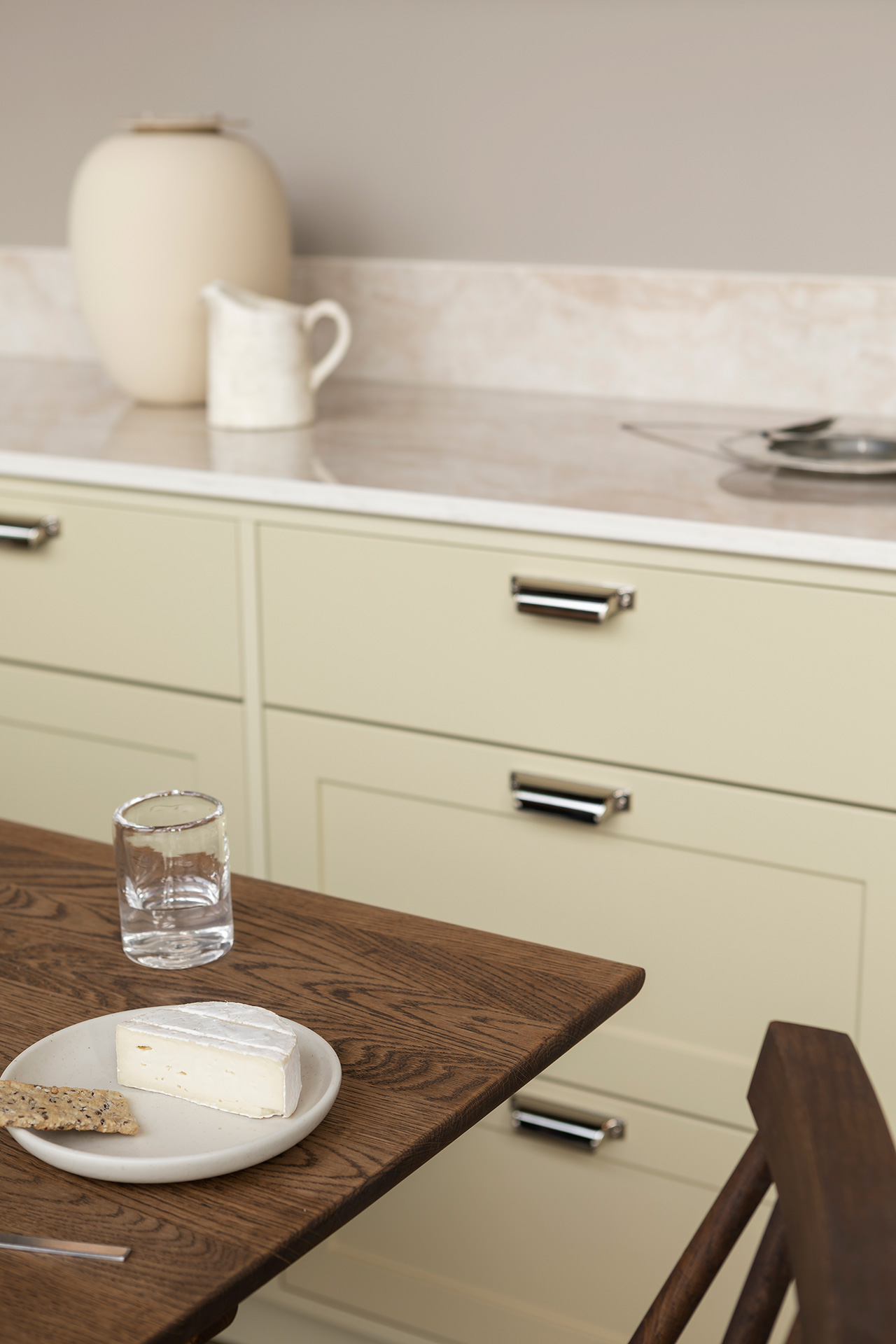 Stramme, rene linjer, asketiske detaljer og nøye utført håndverk står i sentrum. Stilen er ikke bare historie; men en levende trendsetter som fortsetter å prege moderne hjem. Lindøya forener klassisk og moderne stil, og representerer et bærekraftig designvalg man kan leve lenge med. Her er det fokus på renhet og funksjon, med nøye utvalgte materialer og presis produksjonsprosess sikrer at hvert kjøkken leveres med førsteklasses kvalitet.