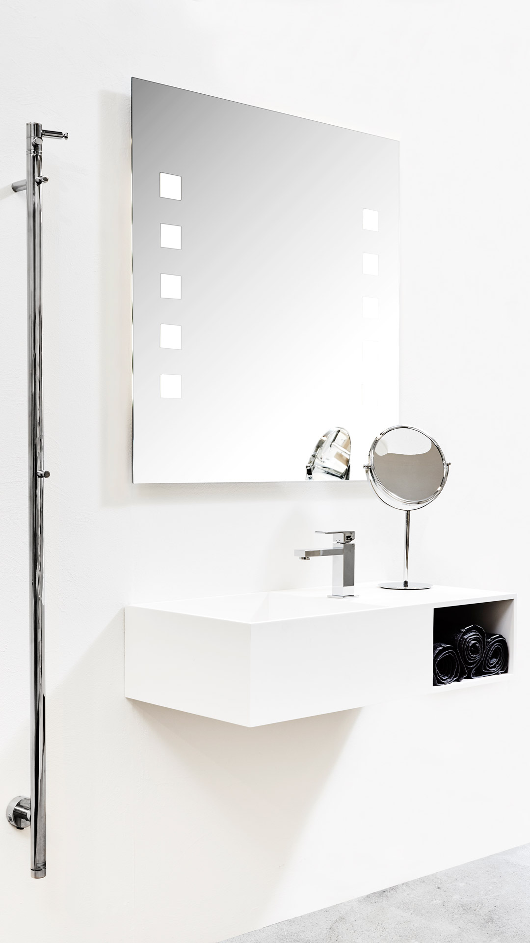 Et lekkert speil blir lagt merke til på badet, og det skaper romfølelse. Vi tilbyr en rekke ulike speil både med og uten belysning. I tillegg har vi stort utvalg av servanter, og armaturer.