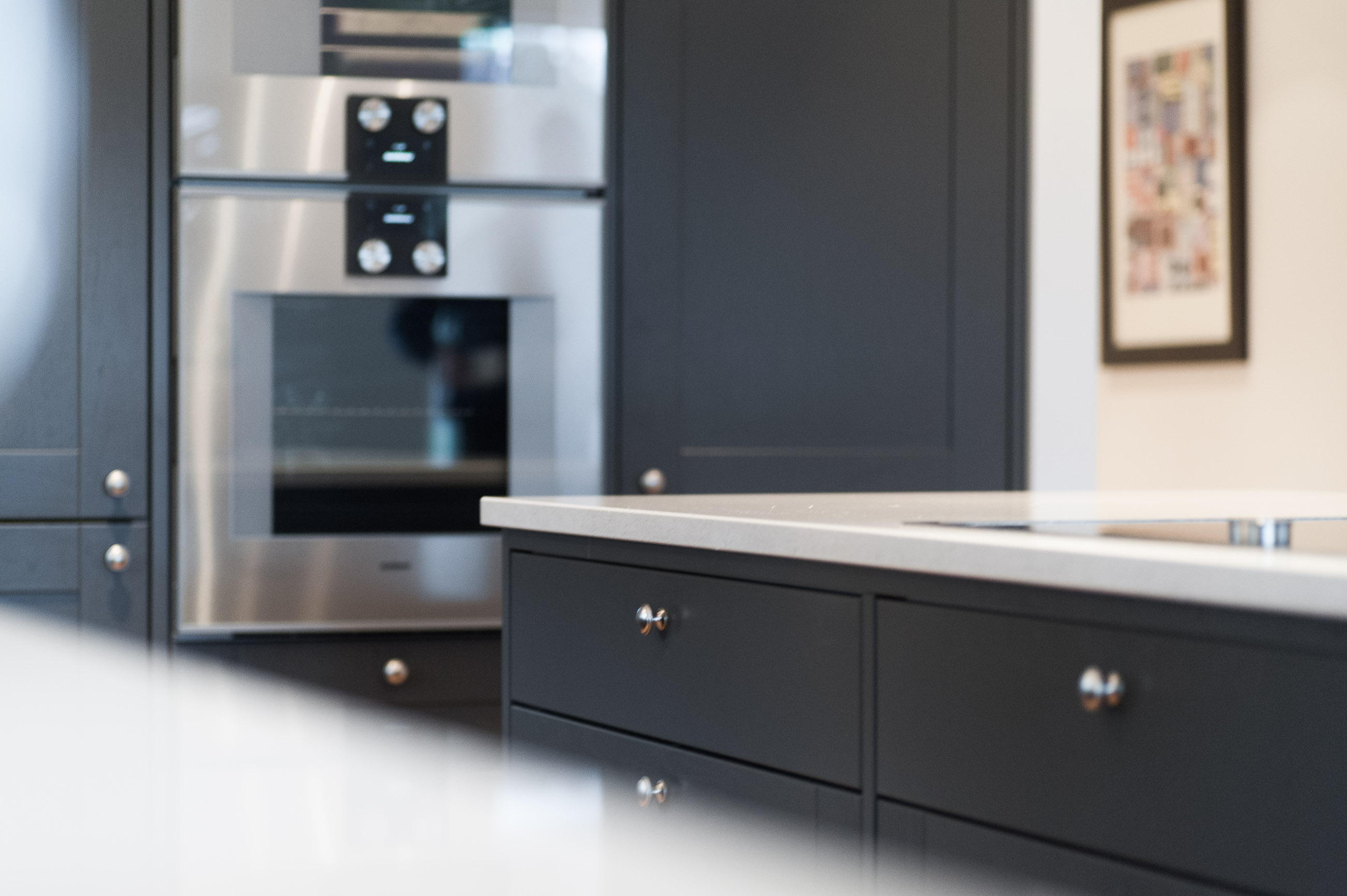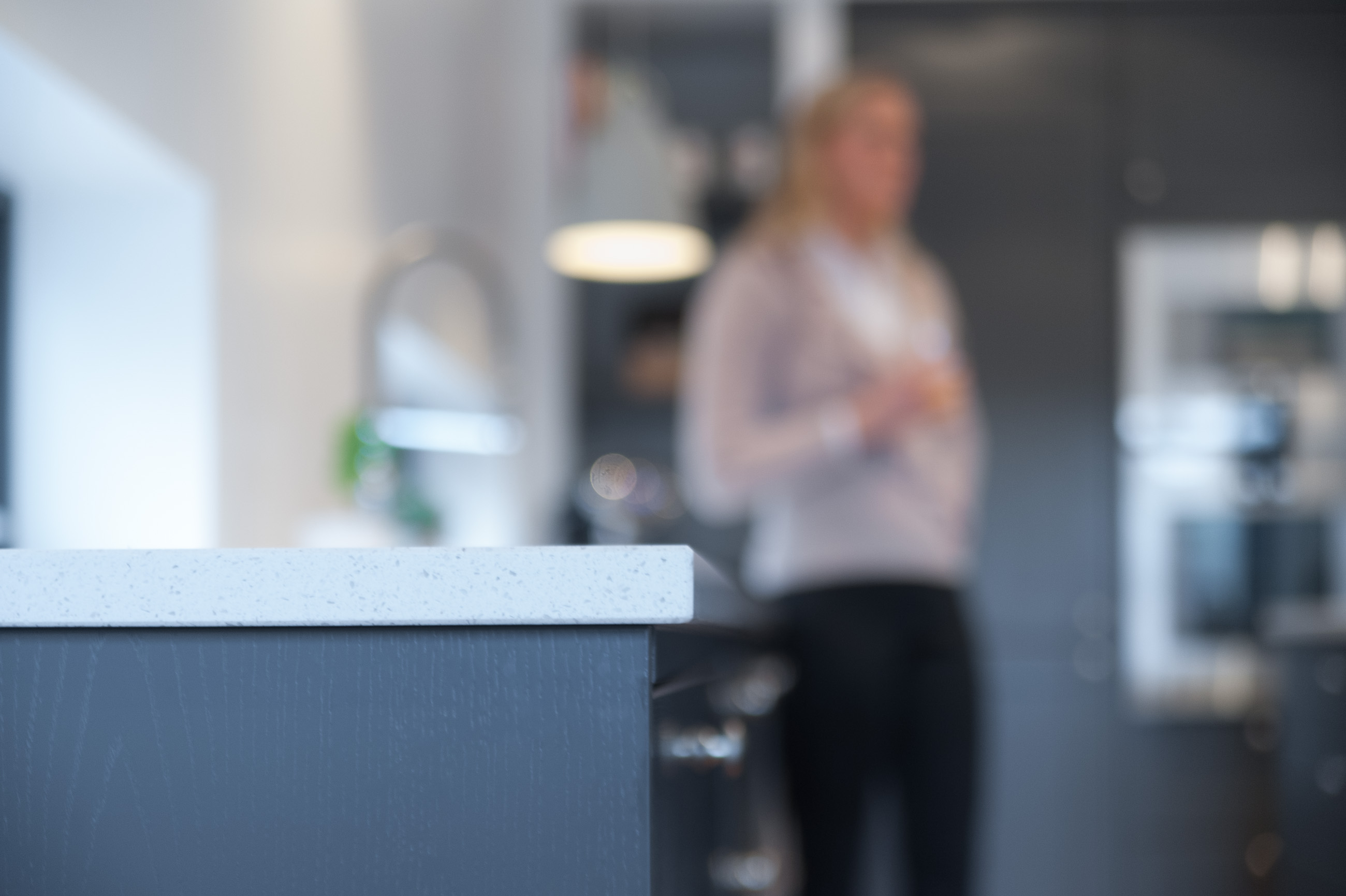 Resultatet ble et Premium-kjøkken med elegante linjer og et luftig, klassisk uttrykk. Fargekombinasjonen av grå, heltre eik og Silestone benkeplate i fargen Maple er paret glad de valgte. Over kjøkkenøya ligger ventilatoren godt skjult i taket. Vi savner ikke overskap, hvite- varene, høyskap og benkeskap dekker oppbevaringsbehovene.