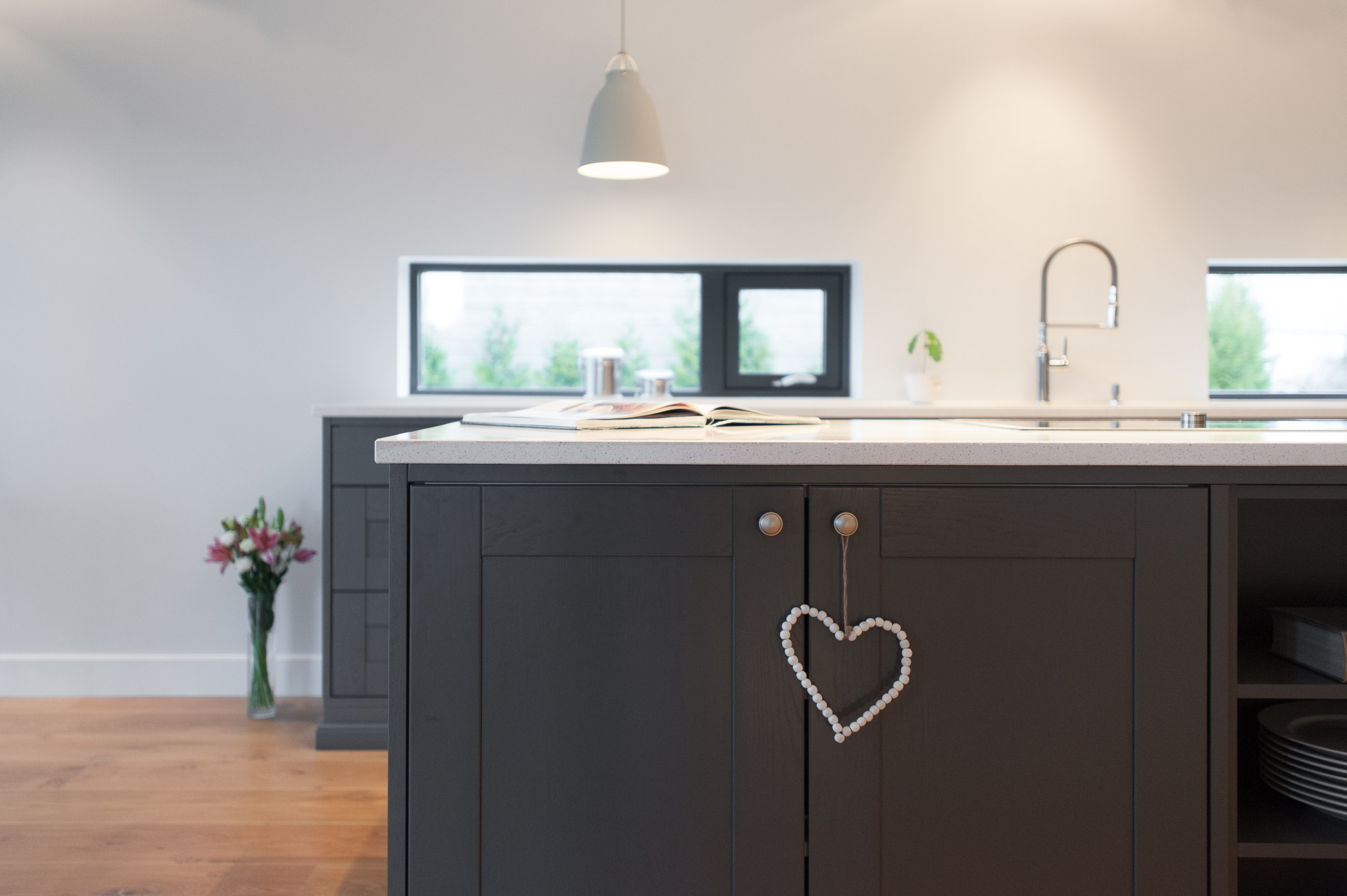 Sommeren 2013 flyttet Jeanette og Aksel med barna Celine (7) og Ole Martin (5) inn i det nye huset – bare 300 meter fra det gamle rekkehuset som nå var solgt. Hos sin lokale Strai-forhandler, Bergen Kjøkken Atelier, fikk paret hjelpen de trengte for kjøkkenet på 29 m2.