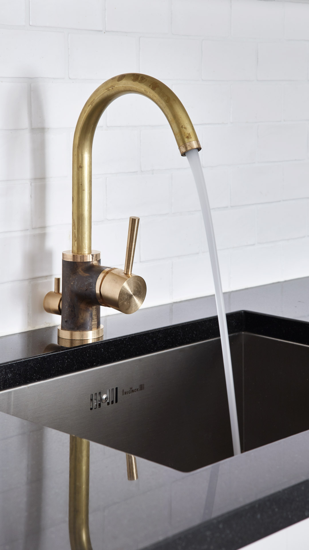Benkeplaten i granitt er både flott og praktisk, og vi elsker det spesielle armaturet som har en herlig, gammel patina, beskriver Kristin. – Nå som alt er tilrettelagt akkurat slik vi ville ha det, venter jeg bare på at inspirasjonen til matlagingen skal komme hvert øyeblikk, legger hun til og ler.
