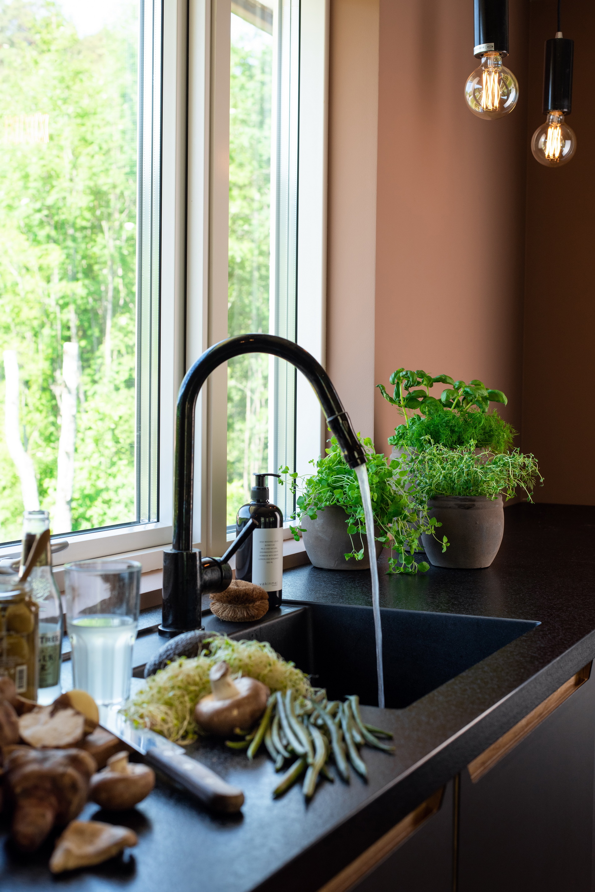 En elegant kjøkkenarmatur kan bli prikken over i-en på ditt nye kjøkken. Velg armatur i sort, hvitt eller krom som matcher kjøkkenets farger og stil.