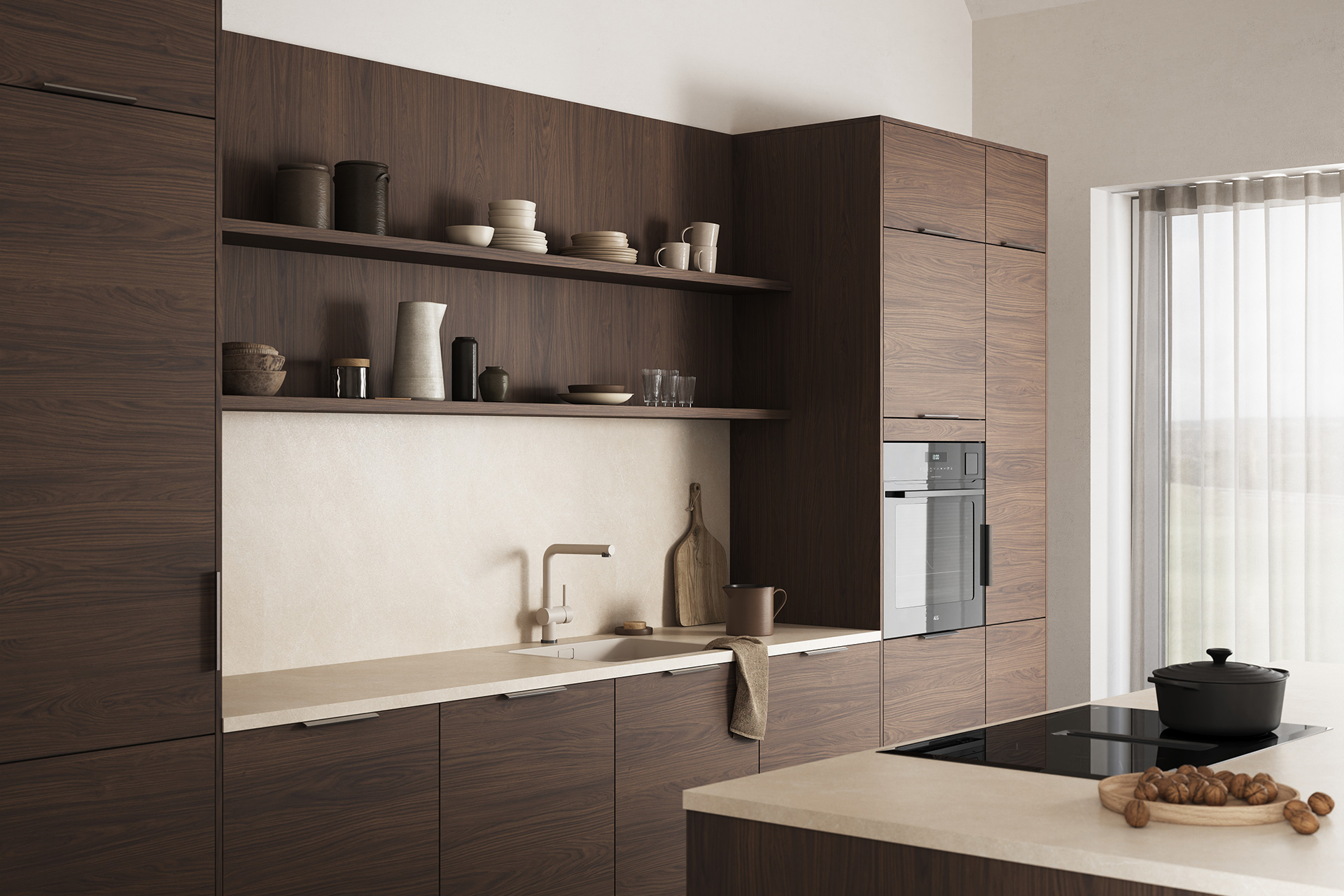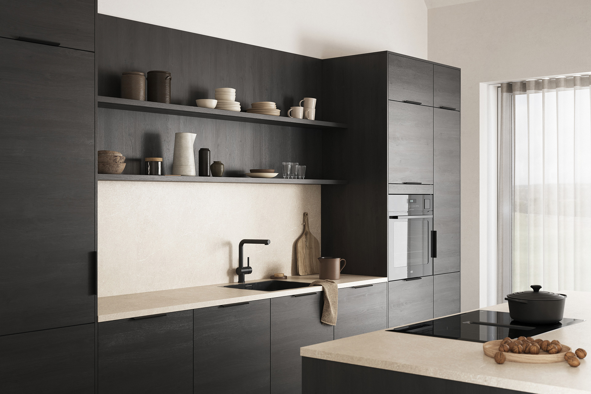 Femunden har en overflate som gjengir trestruktur og -mønster på en naturtro måte. Her får du det beste fra to verdner: holdbarhet og stabilitet fra slitesterk melamin i kombinasjon med struktur og fargespill vi kjenner fra ekte tre.