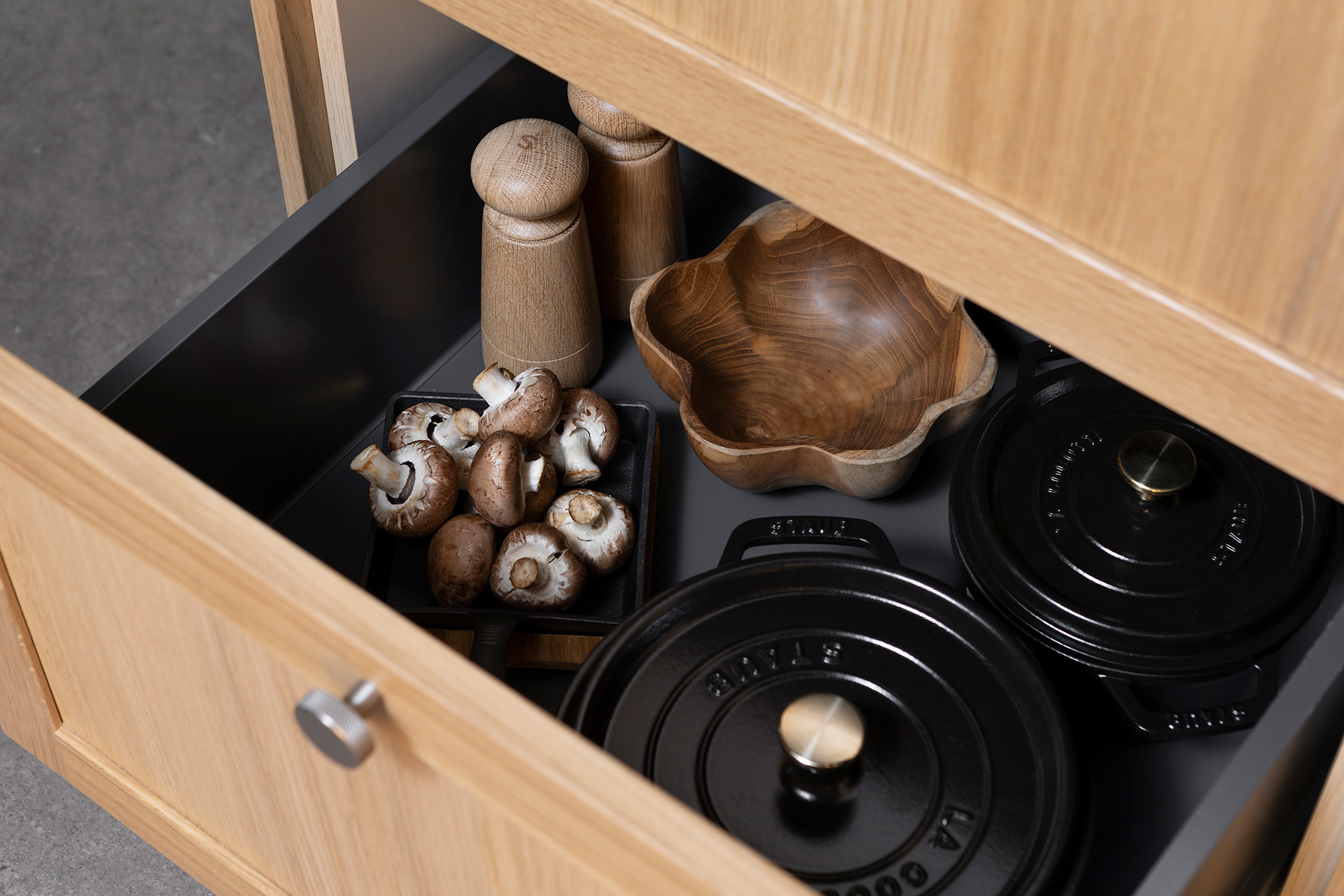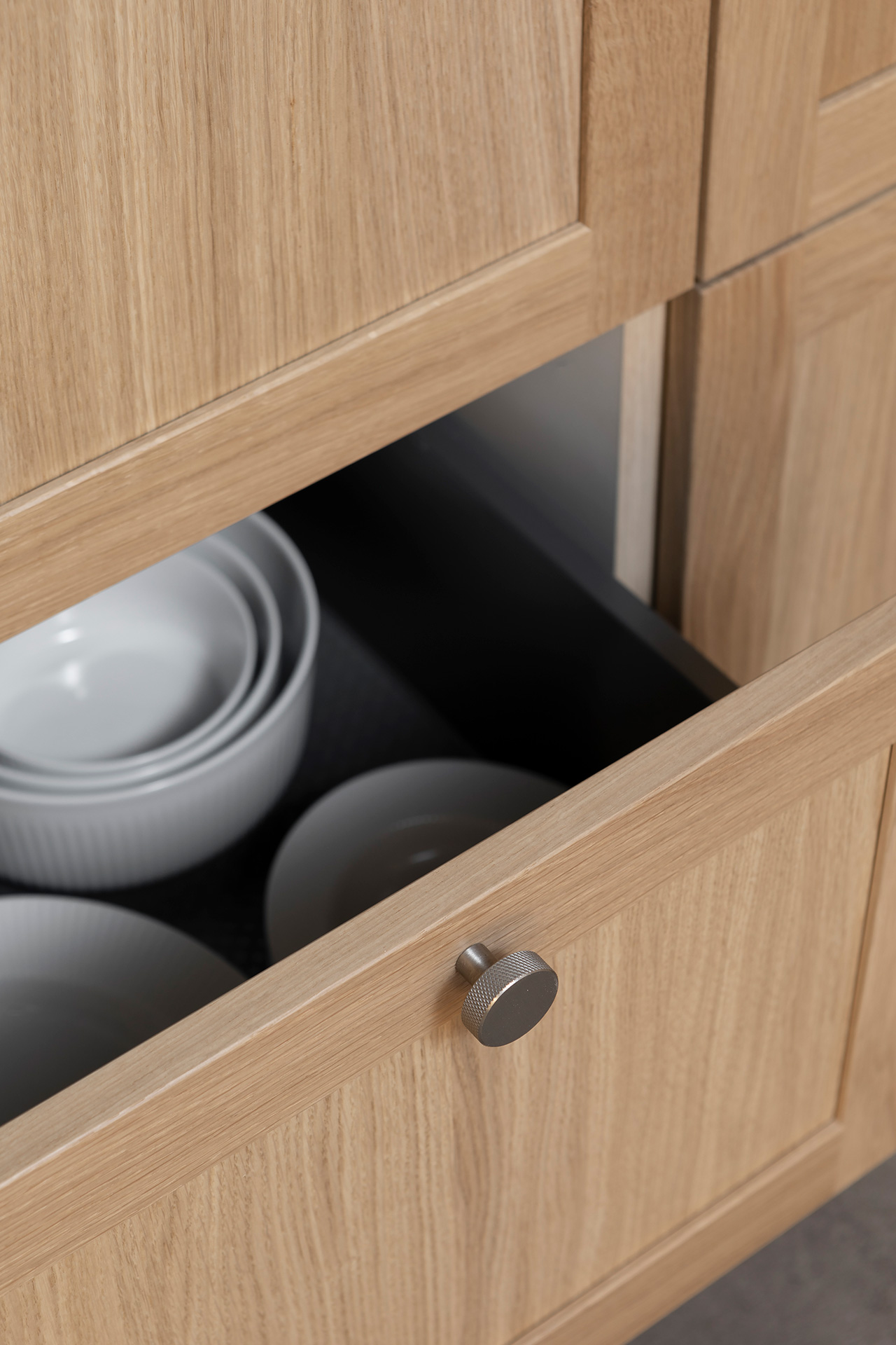 Stramme, rene linjer, asketiske detaljer og nøye utført håndverk står i sentrum. Stilen er ikke bare historie; men en levende trendsetter som fortsetter å prege moderne hjem. Nordmarka forener klassisk og moderne stil, og representerer et bærekraftig designvalg man kan leve lenge med. Her er det fokus på renhet og funksjon, med nøye utvalgte materialer og presis produksjonsprosess sikrer at hvert kjøkken leveres med førsteklasses kvalitet.